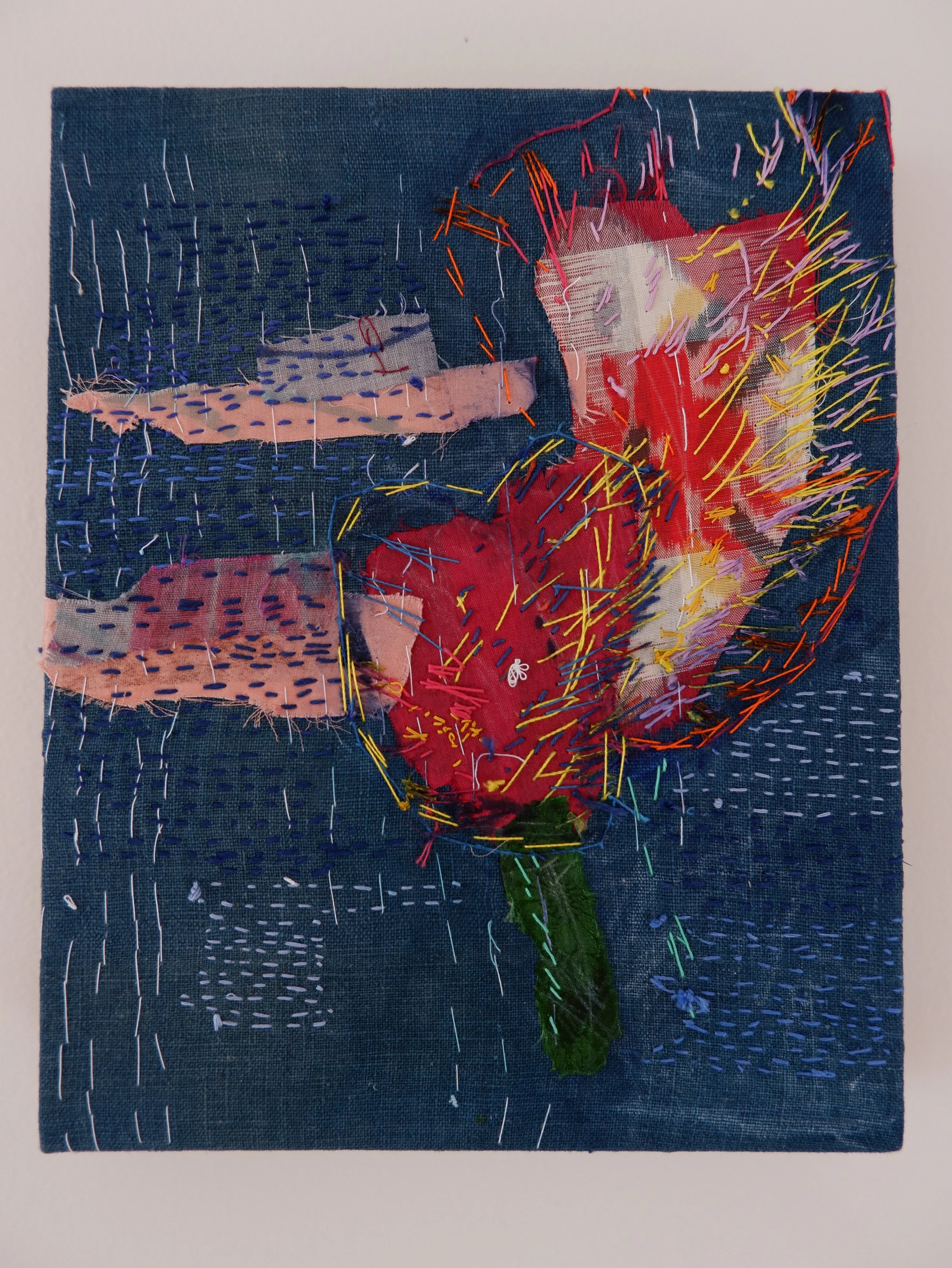 Untitled, 2022 Antique textiles, cotton thread, acrylic paint 25 x 20cm